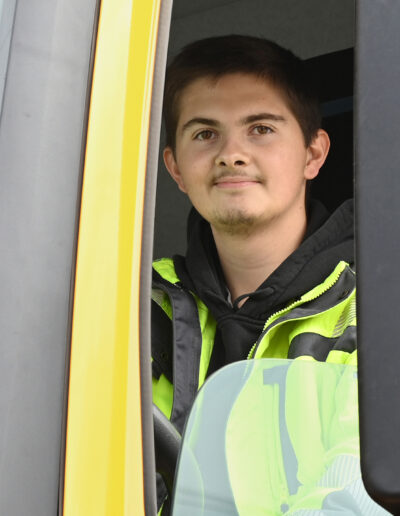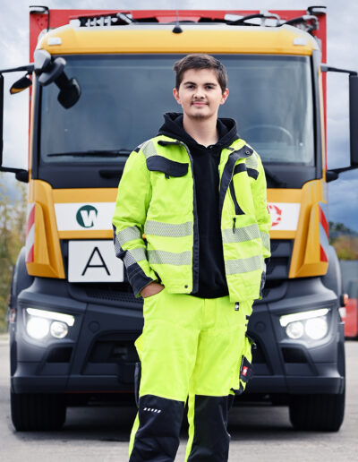 Ich arbeite eng mit dem Fahrer zusammen und fahre mit, um umfassendes Wissen zu erwerben. Außerdem werde ich flexibel dort eingesetzt, wo im Betrieb Unterstützung benötigt wird.