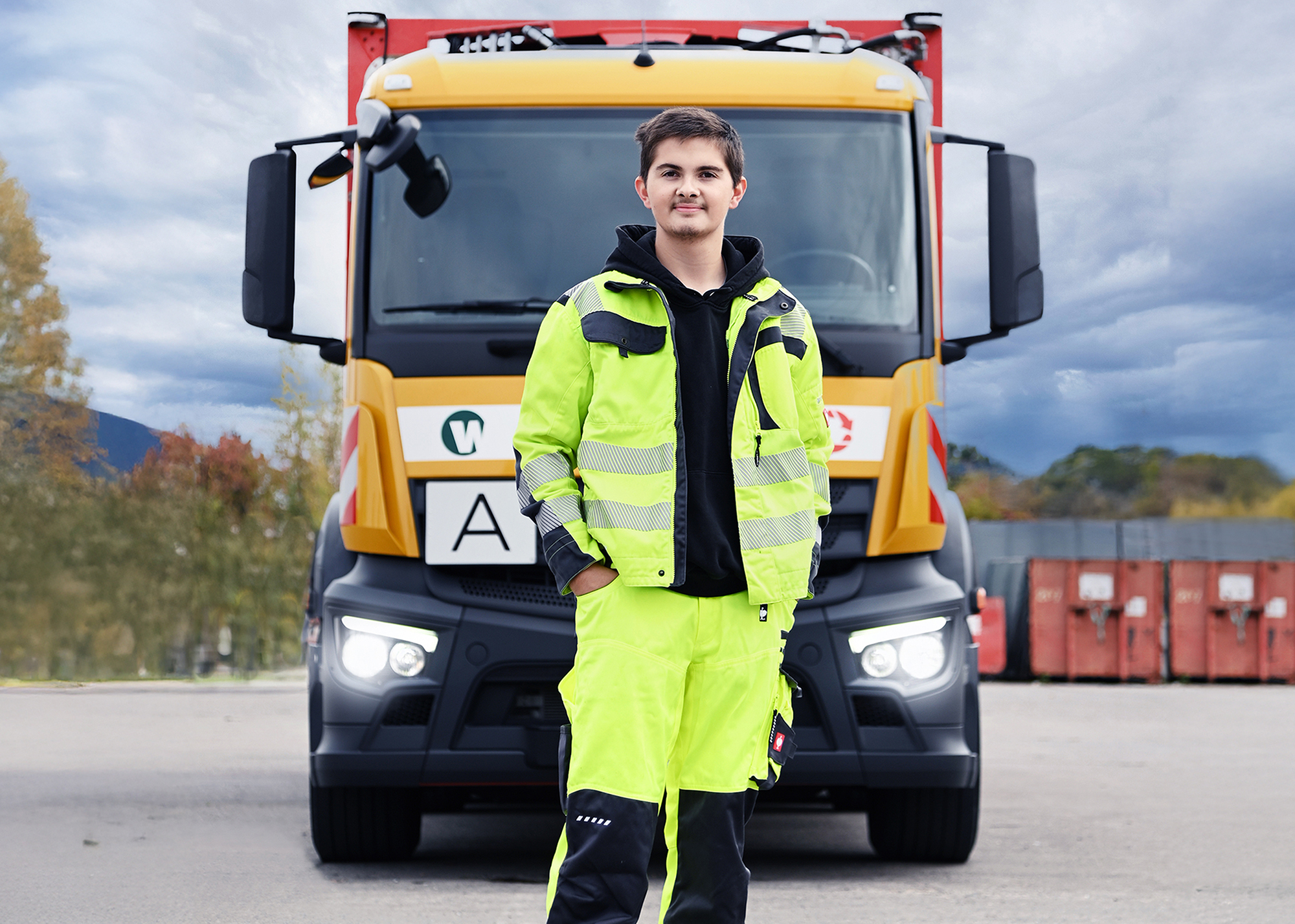 Ich durfte die verschiedenen Abteilungen rund um den Fuhrpark kennenlernen, einschließlich aller Fahrzeuge, den Aufbau unserer Sortieranlagen und die verschiedenen Abladeplätze. Ebenso bekam ich Einblicke in die Disposition, die ein zentraler Bestandteil des Fuhrparks ist.